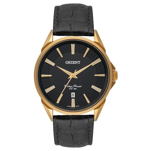 Informações Básicas Marca: Orient Referência: MGSC1010 P1PX Gênero: Masculino : 12 Meses de Orient Nacional Características Composição do Vidro: Cristal Mineral Material da Caixa: Aço Inox Cor da Caixa: Dourado Material da Pulseira: Couro Cor da Pulseira: Preto Fundo da maquina: Rosca Fechado Mostrador: Fundo Preto Funções Calendário Medidas Diâmetro da Caixa: 4,5 cm Contando com a Coroa Espessura da Caixa: 0,9 cm Largura da Pulseira: 2,1 cm Resistência a Água: 5 ATM/ 50 Metros Pode Lavar as Mãos: Sim Pode Usar em Água Corrente: Sim Pode Usar na Piscina: Não Pode Usar em Mergulho Profundo: Não Acompanha: Manual de Instruções Certificado de Orient Embalagem da Orient Marca: Não Informado