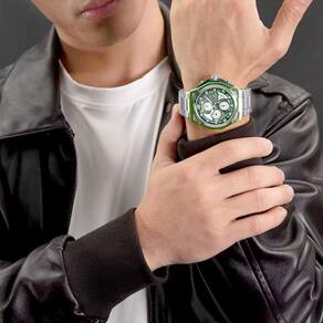 O relógio contemporâneo é o toque de elegância que todo homem moderno deve ter. Com um design impecável e acabamentos em aço inoxidável, este relógio é mais do que um simples acessório, é uma declaração de estilo. O mecanismo de quartzo garante precisão, enquanto as funcionalidades como cronógrafo e calendário completo viabilizam uma experiência única e prática.