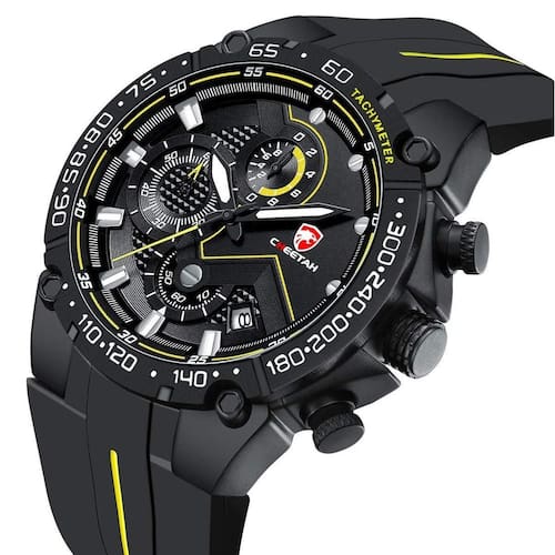 Características: Marca: Cheetah Modelo: 1606 Categoria: Analógico Estilo: Esportivo Movimento: Quartzo Cronógrafo: Ponteiros funcionais Calendário: Sim Diâmetro da caixa visor : 45 mm Espessura da caixa visor : 14 mm Tamanho da pulseira: 225 mm Largura da pulseira: 17.5 mm Tipo de fecho: Fivela Simples Material do Visor: Vidro Mineral Material da caixa: Liga Material da pulseira: Silicone Peso liquido: Cerca de 106g Alimentação: Bateria Resistente à Água: 5ATM : 03 Meses Conteúdo da Embalagem: - Relógio - Manual de instruções em inglês - Certificado internacional de originalidade Marca: Não Informado Ean: 6012507599561