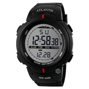 Relógio masculino esportivo atlantis 7330g digital marca: atlantis modelo: 7330g categoria: digital analógico: não digital: sim 1 horário formato: 12/24h calendário: sim despertador: sim bip de hora: sim mostra o dia da semana: sim mostra o dia do mês: sim cronômetro: sim luz: sim cor da iluminação: verde resistente à água: 5 atm pode ser utilizado para nadar no raso, por pouco tempo submerso - respingos: sim - chuva: sim - lavar carro: sim - lavar louça: sim - natação: sim - mergulho: não característica do vidro: acrílico tipo de fecho: fivela simples cor da caixa: preta material da caixa: plástico formato da caixa: redondo diâmetro da caixa: 49,00 mm espessura da caixa: 14,00 mm cor da pulseira: preta material da pulseira: plástico largura da pulseira: 20,00 mm comprimento máximo da pulseira: 225,00 mm alimentação: bateria interna peso líquido: 0,051 kg cor predominante: preto cor diferencial: vermelho garantia: 3 meses