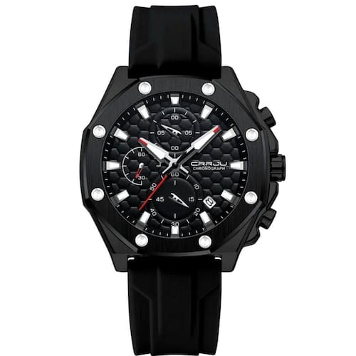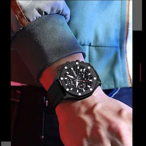 Especificações: [Visualização Clara] Desfrute de uma visibilidade nítida em qualquer condição de luz com o recurso luminoso. Este relógio de quartzo masculino mantém você informado, mesmo na escuridão, tornando cada segundo claramente visível. [Funcionalidade Completa] Vá além da hora com o cronógrafo e o calendário completo. Este relógio de pulso masculino genuíno oferece um leque de funcionalidades úteis, auxiliando em diversas atividades e mantendo sua rotina organizada. [Design Durável] Feito com uma pulseira de silicone de alta qualidade e caixa em liga metálica, este relógio de quartzo é construído para durar. A robustez do material garante conforto e resistência ao uso prolongado. [Estilo Versátil] O formato de caixa tonneau e o fecho oculto proporcionam um visual elegante e discreto. Este relógio de pulso masculino se adapta perfeitamente a qualquer estilo, do casual ao formal, realçando sua aparência. [Resistência Confiável] Com profundidade de resistência à água de 3Bar, este relógio de quartzo é confiável para o uso diário, protegendo contra respingos e chuva. Tenha a tranquilidade de que seu investimento está seguro.