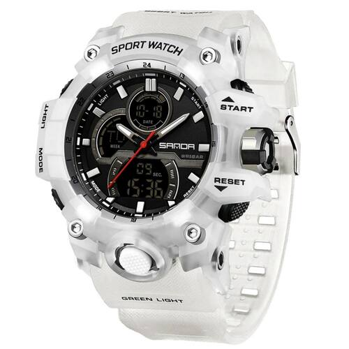 Relógio Masculino Esportivo Multifuncional de Quartzo, resistente à água, combina estilo robusto com funcionalidade. Possui cronômetro, alarme, iluminação noturna, e design durável, ideal para atividades ao ar livre.