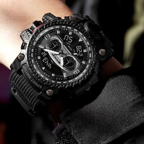 O relógio é resistente a água de 104,05 pés / 50m e pode suportar suor, chuva acidental ou respingos de água. Este relógio é resistente a riscos e proporciona uma sensação suave ao usá-lo, a pulseira é totalmente flexível e se mantém confortável em seu pulso, com largura de 26mm e comprimento de 26cm dá ao relógio uma aparência elegante.