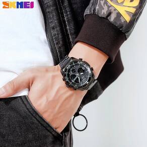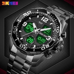 Relógio Masculino Esportivo Skmei 1649 AnaDigi Luxo Cor: Preto Se você deseja usar um relógio de luxo super especial e atraente para seus melhores momentos. Este relógio é um relógio de pulso de moda masculina que além de ser lindo tem funções múltiplas, que inclui alarme, data, semana, cronômetro, luz de fundo LED e exibição de 12/24 horas. Se você gosta de estar atraente e sempre na moda, esse relógio é sua melhor escolha Características: Marca: Skmei ógico: Sim Digital: Sim Mostra o dia da semana: Sim Mostra o dia do mês: Sim Despertador: Sim Cronômetro: Sim Luz: Sim Resistente à água: Sim 3ATM - Respingos: Sim - Chuva: Sim - Lavar o carro: Sim - Natação: Não - Mergulho: Não Tipo de feche: Dobrável com Botão Material da caixa: Metal Alloy Material da pulseira: Aço Inoxidável Característica do vidro: Cristal Mineral Espessura da caixa: 17mm Diâmetro da caixa: 48mm Comprimento Máximo: 24cm Largura da pulseira: 20mm Peso líquido: 152g. Alimentação: Bateria Modelo: 1649 Marca: Não Informado Ean: 6012507520541