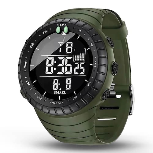 Descrição do produto: - Marca: Smael - Modelo: 1237 - : 90 dias, do vendedor - especificações: este relógio possui luz de fundo, cronômetro, alarme, resistente a choques, calendário, 12/24 horas, resistente à água 50 metros e pulseira com fecho de fivela. Cuidados com produto: - pode ser ao lavar louças, nadar, praticar esportes em águas rasas ou na chuva, mas não para mergulho com snorkel ou tanque de oxigênio. - uma observação importante é que não se deve tomar banho de água quente utilizando seu relógio mesmo que ele seja à prova d'água. Nenhum relógio, mesmo a prova d'água, deve ser submetido ao contato com água muito quente. A água não é prejudicial ao seu relógio, mas sim a temperatura da água. Temperaturas mais elevadas dilatam os materiais e podem comprometer a vedação do seu relógio provocando aberturas para entrada de água. O mesmo problema ocorre com o uso de relógios em saunas. Não é o vapor que prejudica a vedação, mas a temperatura do vapor, ou seja, mesmo que o vidro não fique embaçado, altas temperaturas podem danificar os mecanismos internos do seu relógio. - cuidados com a mudança brusca de temperatura: cuidado ao colocar o relógio em contato com a água muito gelada, como por exemplo, colocar o relógio em caixa de isopor com gelo quando for pegar alguma bebida, pois essa mudança brusca de temperatura pode causar choque térmico no relógio, fazendo o relógio ficar com o vidro suado. - não é recomendado apertar os botões do relógio quando ele estiver submerso, tais práticas são consideradas como mau uso e nossa não cobre defeito por mau uso. - mesmo o melhor relógio à prova d'água para mergulho não está livre dos efeitos da água salgada, que pode oxidar partes metálicas e diminuir a durabilidade de materiais sintéticos ou plásticos. Por isso, após o mergulho, se o relógio tiver contato com água salgada ou de piscina, enxague com água corrente para remover qualquer resíduo de sal ou cloro. Dimensões: - comprimento da pulseira: aproximadamente 24 cm - diâmetro da caixa: aproximadamente 5 cm - dial espessura: aproximadamente 1.8 cm - largura da pulseira: aproximadamente 2.4 cm