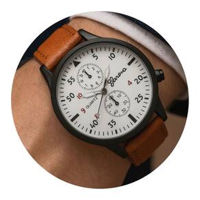 Relógio Masculino Genova Quartzo Couro Marrom une estilo clássico e modernidade em um único acessório. Seu mostrador branco com detalhes em preto e vermelho traz sofisticação, enquanto os submostradores decorativos acrescentam charme ao design. A pulseira em couro sintético marrom, com costura reforçada, garante conforto, resistência e visual elegante. Ideal para uso no dia a dia ou em ocasiões formais, este relógio versátil é perfeito para homens que valorizam estilo e praticidade em qualquer momento.