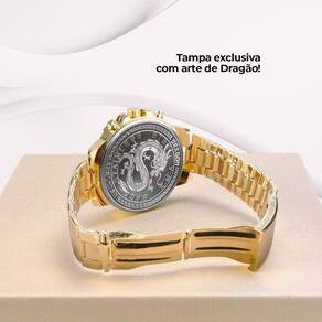 Com detalhes únicos de arte de dragão, este relógio representa estilo e exclusividade. Além disso, este incrível conjunto acompanha uma caixa premium exclusiva com a mesma temática de dragão, perfeita para presentear alguém especial e proteger o relógio com sofisticação. Não perca a oportunidade de adquirir este conjunto único e elegante. Adicione estilo à sua coleção de acessórios ou presenteie alguém com essa combinação perfeita de estilo e sofisticação. Ean: 7892447808027