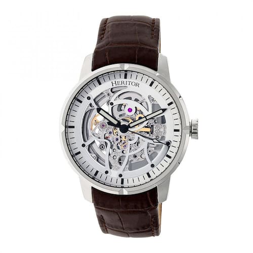 Heritor Relógio masculino automático "Ryder Skeleton" com movimento de joias 316L de qualidade cirúrgica, relógio de couro e cristal mineral revestido de safira, cor: marrom escuro (modelo: HERHR4603)