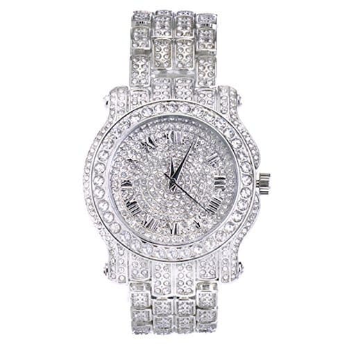 Nosso exclusivo relógio Classic Iced Out de 45 mm é gelado da caixa até a pulseira com cristais de zircônia cúbica. Super brilhante pela aparência, este relógio lembra muitos relógios s por rappers e artistas populares no Hip Hop. Inundamos nossos relógios com gelo, assim como relógios personalizados de marcas populares de luxo, apenas para deixar as pessoas adivinhando qual é a marca. Eles parecem e parecem caros! Nossos relógios são totalmente ajustáveis para que os clientes possam remover os elos para se ajustarem ao tamanho de seus próprios pulsos. Perfeitos para presentear durante as festas de fim de ano, nossos relógios vêm embalados em boxe de luxo com uma almofada de travesseiro e etiquetas removíveis Ice Star. Nossos relógios não só ficam bem em homens, mas nós os projetamos para que sejam atraentes em todos os pulsos, incluindo unissex. O atendimento ao cliente é muito importante para nós. Apoiamos nosso produto com uma garantia de devolução do dinheiro de 15 dias para todos os relógios não s nas mesmas condições em que foram recebidos. Sabemos que você vai adorar nosso produto!