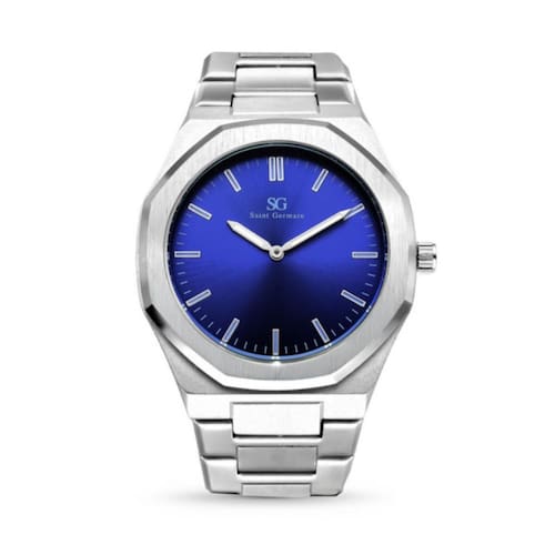 O Hudson Blue Silver, da Saint Germain, é um relógio masculino que traduz sofisticação, força e estilo contemporâneo. Com caixa robusta de 42mm e acabamento em aço escovado, ele foi feito para homens que valorizam a presença marcante e o design de impacto.