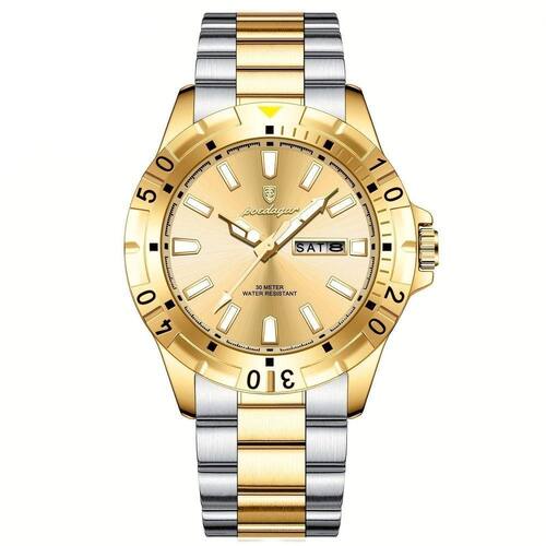[Estilo Casual Esportivo]: Une a versatilidade de um design esportivo com a sofisticação necessária para encontros empresariais. [Resistente à Água]: Permite aventuras sem medo de danos cas pela água, tornando-se ideal para qualquer clima. [Luz Noturna]: Visibilidade contínua em ambientes com pouca iluminação, garantindo que você nunca perca a noção do tempo. [Pulseira de Aço Inoxidável]: Durabilidade e resistência excepcionais contra o desgaste diário, mantendo o visual intacto. [Calendário Duplo]: Mantém você organizado e no controle com uma funcionalidade de calendário clara e precisa.