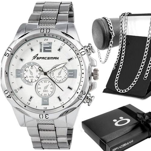 Chegou o kit completo da linha Orizom Spaceman, perfeito para homens que buscam estilo e sofisticação. Este kit inclui um relógio masculino analógico, modelo Spaceman, com maquinário em aço inoxidável prata, garantindo durabilidade e elegância. A pulseira do relógio também é em aço inoxidável, resistente e confortável, proporcionando um ajuste seguro no pulso. Além disso, a tampa traseira é blindada e personalizada com arte exclusiva da coleção Spaceman, trazendo um toque de originalidade.