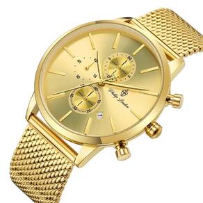 O Lancelot Golden é um relógio excepcional, minimalista e equipado com cronógrafo, combinação encantadora que o torna perfeito para qualquer ocasião. Sua inspiração provém da lendária história do Rei Arthur, com Sir Lancelot sendo um dos cavaleiros mais memoráveis devido à sua honra e devoção ao rei. Com máquina Seiko, este relógio apresenta uma pulseira de malha em aço e caixa dourado. O destaque reside no seu mostrador dourado metalizado. Visando assegurar sua completa satisfação e tranquilidade, estendemos a você uma garantia de um ano para este produto, comprometendo-nos a oferecer uma experiência de uso excepcionalmente segura e confiável.