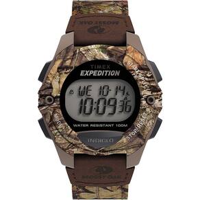 Um amor genuíno pela relojoaria encontra um amor genuíno do grande ao ar livre. Construída para qualquer aventura, esta atualização para o nosso bem elaborado relógio Expedition Full Size Digital CAT tem uma caixa marrom robusta com um anel superior camuflado e alça de tecido com um padrão de camuflagem mossy oak® assi, líderes em camuflagem e estilo de vida ao ar livre. As características incluem um cronógrafo, 3 alarmes, temporizador, indiglo® luz de fundo e é resistente à água até 100 metros.