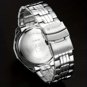 O robusto estojo em liga de zinco proporciona uma estrutura resistente e imponente, complementada pelo nível de resistência à água 3atm, que assegura proteção mesmo nas condições mais desafiadoras. Além disso, a exibição de data adiciona uma funcionalidade prática a este acessório. Seja para um encontro de negócios importante ou uma saída casual, este relógio eleva o seu estilo com um toque de modernidade e sofisticação.