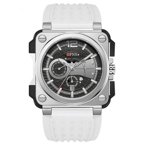 Esse Rélógio para os manos que curtem um estilo de vida ativo e vibes chiques. Este relógio pica é um cronógrafo à prova d'água com um design quadrado que não passa despercebido. Imagina só, um relógio que não só te mostra as horas, mas também resiste a altas aventuras, desde um rolê numa festa na piscina até um evento elegante!