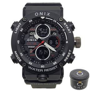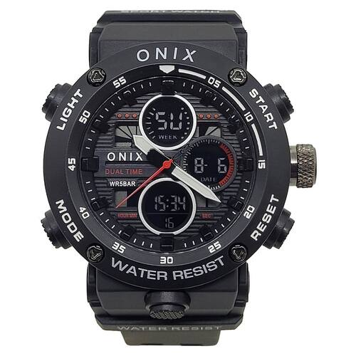 Relógio Masculino Onix AnaDigi OX116 PretoMarca: Onix Categoria: AnaDigi Analógico: Sim (1 Horário) Ponteiros Fluorescentes: Sim Digital: Sim (1 Horário) Calendário: Sim Despertador: Sim Mostra o Dia da Semana: Sim Mostra o Dia do Mês: Sim Cronômetro: Sim Contador Regressivo: Não Luz: Sim Cor da Iluminação: VerdeResistente à Água: 5 ATM (Pode ser utilizado para nadar no raso, por pouco tempo submerso) - Respingos: Sim - Chuva: Sim - Lavar Carro: Sim - Lavar Louça: Sim - Natação: Sim - Mergulho: Não Característica do Vidro: Acrílico Tipo de Fecho: Fivela Cor da Caixa: Preto Material da Caixa: Plástico Formato da Caixa: Redondo Diâmetro da Caixa: 49,00 (mm) Espessura da Caixa: 17,00 (mm) Cor da Pulseira: Preto Material da Pulseira: Silicone Largura da Pulseira: 22,00 (mm) Comprimento Máximo da Pulseira: 240,00 (mm) Alimentação: Bateria Interna Peso Líquido: 0,065 Kg Modelo: OX116 Cor Predominante: Preto Garantia: 12 MesesConteúdo da Embalagem: 01 Relógio 01 Embalagem 01 Termo de Garantia Ean: 7891368316932