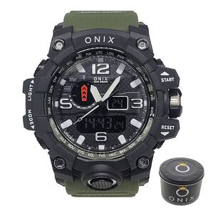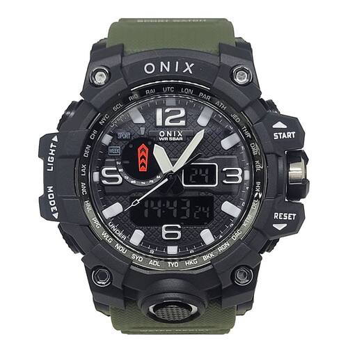 Marca: Onix Categoria: AnaDigi Analógico: Sim (1 Horário) Ponteiros Fluorescentes: Sim Digital: Sim (1 Horário) Calendário: Sim Despertador: Sim Mostra o Dia da Semana: Sim Mostra o Dia do Mês: Sim Cronômetro: Sim Contador Regressivo: Não Luz: Sim Cor da Iluminação: Verde Resistente à Água: 5 ATM - Respingos: Sim - Chuva: Sim - Lavar Carro: Sim - Lavar Louça: Sim - Natação: Sim - Mergulho: Não Característica do Vidro: Acrílico Tipo de Fecho: Fivela Cor da Caixa: Preto Material da Caixa: Plástico Formato da Caixa: Redondo Diâmetro da Caixa: 55,00 (mm) Espessura da Caixa: 18,00 (mm) Cor da Pulseira: Verde Material da Pulseira: Borracha Largura da Pulseira: 21,50 (mm) Comprimento Máximo da Pulseira: 250,00 (mm) Alimentação: Bateria Interna Peso Líquido: 0,064 Kg Modelo: OX117 Cor Predominante: Verde Cor Diferencial: Preto Garantia: 12 Meses