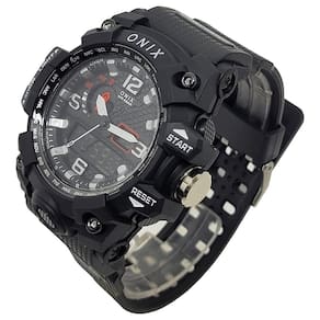 Relógio Masculino Onix AnaDigi OX121 Preto Relógio Masculino Onix AnaDigi OX121 Preto Marca: Onix Categoria: AnaDigi ógico: Sim 1 Horário Ponteiros Fluorescentes: Não Digital: Sim 1 Horário Calendário: Não Despertador: Sim Mostra o Dia da Semana: Sim Mostra o Dia do Mês: Sim Cronômetro: Sim Contador Regressivo: Não Luz: Sim Cor da Iluminação: Verde Resistente à Água: 5 ATM Pode ser para nadar no raso, por pouco tempo submerso - Respingos: Sim - Chuva: Sim - Lavar Carro: Sim - Lavar Louça: Sim - Natação: Sim - Mergulho: Não Característica do Vidro: Acrílico Tipo de Fecho: Fivela Cor da Caixa: Preto Material da Caixa: Borracha Formato da Caixa: Redondo Diâmetro da Caixa: 49,00 mm Espessura da Caixa: 17,00 mm Cor da Pulseira: Preto Material da Pulseira: Borracha Largura da Pulseira: 19,50 mm Comprimento Máximo da Pulseira: 230,00 mm Alimentação: Bateria Interna Peso Líquido: 0,059 Kg Modelo: OX121 Cor Predominante: Preto : 12 Meses Conteúdo da Embalagem: 01 Relógio 01 Embalagem 01 Termo de Marca: Não Informado