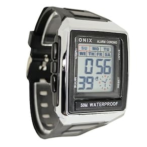 Marca: Onix Categoria: Digital Analógico: Não Digital: Sim (1 Horário) Calendário: Sim Despertador: Sim Mostra o Dia da Semana: Sim Mostra o Dia do Mês: Sim Cronômetro: Sim Luz: Sim Cor da Iluminação: Verde Resistente à Água: 5 ATM - Respingos: Sim - Chuva: Sim - Lavar Carro: Sim - Lavar Louça: Sim - Natação: Sim - Mergulho: Não Característica do Vidro: Acrílico Tipo de Fecho: Fivela Cor da Caixa: Prata Material da Caixa: Plástico Formato da Caixa: Quadrado Comprimento da Caixa: 40,00 (mm) Largura da Caixa: 36,00 (mm) Espessura da Caixa: 14,50 (mm) Cor da Pulseira: Preto Material da Pulseira: Plástico Largura da Pulseira: 20,00 (mm) Comprimento Máximo da Pulseira: 250,00 (mm) Alimentação: Bateria Interna Peso Líquido: 0,040 Kg Modelo: IT-1805 Cor Predominante: Prata Cor Diferencial: Preto Garantia: 12 Meses