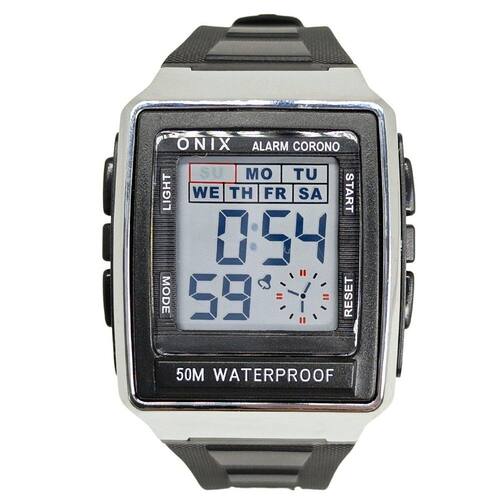 Relógio Masculino Onix Digital IT-1805 Prata e Preto Relógio Masculino Onix Digital IT-1805 Prata e Preto Marca: Onix Categoria: Digital ógico: Não Digital: Sim 1 Horário Calendário: Sim Despertador: Sim Mostra o Dia da Semana: Sim Mostra o Dia do Mês: Sim Cronômetro: Sim Luz: Sim Cor da Iluminação: Verde Resistente à Água: 5 ATM Pode ser para nadar no raso, por pouco tempo submerso - Respingos: Sim - Chuva: Sim - Lavar Carro: Sim - Lavar Louça: Sim - Natação: Sim - Mergulho: Não Característica do Vidro: Acrílico Tipo de Fecho: Fivela Cor da Caixa: Prata Material da Caixa: Plástico Formato da Caixa: Quadrado Comprimento da Caixa: 40,00 mm Largura da Caixa: 36,00 mm Espessura da Caixa: 14,50 mm Cor da Pulseira: Preto Material da Pulseira: Plástico Largura da Pulseira: 20,00 mm Comprimento Máximo da Pulseira: 250,00 mm Alimentação: Bateria Interna Peso Líquido: 0,040 Kg Modelo: IT-1805 Cor Predominante: Prata Cor Diferencial: Preto : 12 Meses Conteúdo da Embalagem: 01 Relógio 01 Embalagem 01 Termo de Marca: Não Informado Ean: 7891368319124