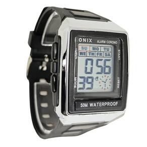 Relógio Masculino Onix Digital IT-1805 Prata e Preto Relógio Masculino Onix Digital IT-1805 Prata e Preto Marca: Onix Categoria: Digital ógico: Não Digital: Sim 1 Horário Calendário: Sim Despertador: Sim Mostra o Dia da Semana: Sim Mostra o Dia do Mês: Sim Cronômetro: Sim Luz: Sim Cor da Iluminação: Verde Resistente à Água: 5 ATM Pode ser para nadar no raso, por pouco tempo submerso - Respingos: Sim - Chuva: Sim - Lavar Carro: Sim - Lavar Louça: Sim - Natação: Sim - Mergulho: Não Característica do Vidro: Acrílico Tipo de Fecho: Fivela Cor da Caixa: Prata Material da Caixa: Plástico Formato da Caixa: Quadrado Comprimento da Caixa: 40,00 mm Largura da Caixa: 36,00 mm Espessura da Caixa: 14,50 mm Cor da Pulseira: Preto Material da Pulseira: Plástico Largura da Pulseira: 20,00 mm Comprimento Máximo da Pulseira: 250,00 mm Alimentação: Bateria Interna Peso Líquido: 0,040 Kg Modelo: IT-1805 Cor Predominante: Prata Cor Diferencial: Preto : 12 Meses Conteúdo da Embalagem: 01 Relógio 01 Embalagem 01 Termo de Marca: Não Informado Ean: 7891368319124