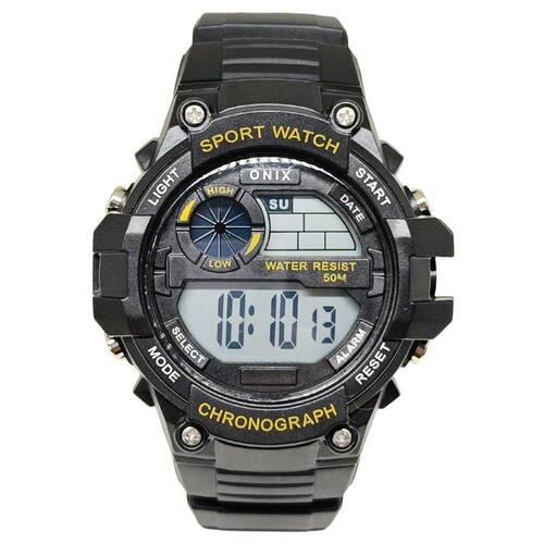 Relógio Masculino Onix Digital IT-1813 Preto Relógio Masculino Onix Digital IT-1813 Preto Marca: Onix Categoria: Digital ógico: Não Digital: Sim 1 Horário Calendário: Sim Despertador: Sim Mostra o Dia da Semana: Sim Mostra o Dia do Mês: Sim Cronômetro: Sim Luz: Sim Cor da Iluminação: Verde Resistente à Água: 5 ATM Pode ser para nadar no raso, por pouco tempo submerso - Respingos: Sim - Chuva: Sim - Lavar Carro: Sim - Lavar Louça: Sim - Natação: Sim - Mergulho: Não Característica do Vidro: Acrílico Tipo de Fecho: Fivela Cor da Caixa: Preto Material da Caixa: Plástico Formato da Caixa: Redondo Diâmetro da Caixa: 45,00 mm Espessura da Caixa: 17,00 mm Cor da Pulseira: Preto Material da Pulseira: Borracha Largura da Pulseira: 19,50 mm Comprimento Máximo da Pulseira: 250,00 mm Alimentação: Bateria Interna Peso Líquido: 0,050 Kg Modelo: IT-1813 Cor Predominante: Preto : 12 Meses Conteúdo da Embalagem: 01 Relógio 01 Embalagem 01 Termo de Marca: Não Informado