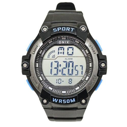 Relógio Masculino Onix Digital IT-383(0153) Preto e AzulMarca: Onix Categoria: Digital Analógico: Não Digital: Sim (1 Horário) Calendário: Sim Despertador: Sim Mostra o Dia da Semana: Sim Mostra o Dia do Mês: Sim Cronômetro: Sim Luz: Sim Cor da Iluminação: VerdeResistente à Água: 5 ATM (Pode ser utilizado para nadar no raso, por pouco tempo submerso) - Respingos: Sim - Chuva: Sim - Lavar Carro: Sim - Lavar Louça: Sim - Natação: Sim - Mergulho: Não Característica do Vidro: Acrílico Tipo de Fecho: Fivela Cor da Caixa: Preto Material da Caixa: Metal Banho IP Formato da Caixa: Redondo Diâmetro da Caixa: 48,00 (mm) Espessura da Caixa: 15,00 (mm) Cor da Pulseira: Preto Material da Pulseira: Plástico Largura da Pulseira: 22,00 (mm) Comprimento Máximo da Pulseira: 270,00 (mm) Alimentação: Bateria Interna Peso Líquido: 0,055 Kg Modelo: IT-383(0153) Cor Predominante: Preto Cor Diferencial: Azul Garantia: 12 MesesConteúdo da Embalagem: 01 Relógio 01 Embalagem 01 Termo de Garantia