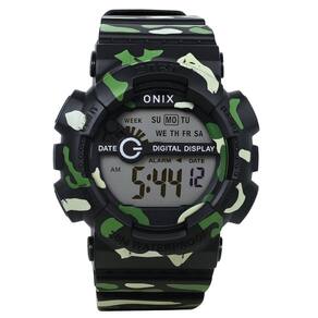 Relógio Masculino Onix Digital IT-855C CamufladoMarca: Onix Categoria: Digital Analógico: Não Digital: Sim (1 Horário) Calendário: Sim Despertador: Sim Mostra o Dia da Semana: Sim Mostra o Dia do Mês: Sim Cronômetro: Sim Luz: Sim Cor da Iluminação: VerdeResistente à Água: 5 ATM (Pode ser utilizado para nadar no raso, por pouco tempo submerso) - Respingos: Sim - Chuva: Sim - Lavar Carro: Sim - Lavar Louça: Sim - Natação: Sim - Mergulho: Não Característica do Vidro: Acrílico Tipo de Fecho: Fivela Cor da Caixa: Camuflado Material da Caixa: Plástico Formato da Caixa: Redondo Diâmetro da Caixa: 47,00 (mm) Espessura da Caixa: 16,00 (mm) Cor da Pulseira: Camuflado Material da Pulseira: Plástico Largura da Pulseira: 21,50 (mm) Comprimento Máximo da Pulseira: 270,00 (mm) Alimentação: Bateria Interna Peso Líquido: 0,055 Kg Modelo: IT-855C Cor Predominante: Camuflado Garantia: 12 MesesConteúdo da Embalagem: 01 Relógio 01 Embalagem 01 Termo de Garantia