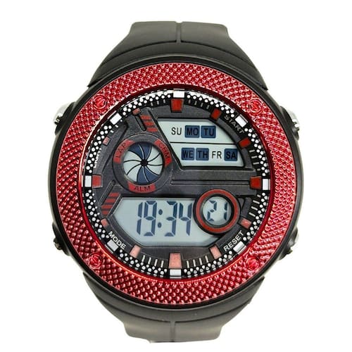 Relógio Masculino Onix Digital IT-89820183 Preto e Vermelho Relógio Masculino Onix Digital IT-89820183 Preto e Vermelho Marca: Onix Categoria: Digital ógico: Não Digital: Sim 1 Horário Calendário: Sim Despertador: Sim Mostra o Dia do Mês: Sim Cronômetro: Sim Luz: Sim Cor da Iluminação: Verde Resistente à Água: 5 ATM Pode ser para nadar no raso, por pouco tempo submerso - Respingos: Sim - Chuva: Sim - Lavar Carro: Sim - Lavar Louça: Sim - Natação: Sim - Mergulho: Não Característica do Vidro: Acrílico Tipo de Fecho: Fivela Cor da Caixa: Preto Material da Caixa: Plástico Formato da Caixa: Redondo Diâmetro da Caixa: 50,00 mm Espessura da Caixa: 15,00 mm Cor da Pulseira: Preto Material da Pulseira: Plástico Largura da Pulseira: 21,50 mm Comprimento Máximo da Pulseira: 250,00 mm Alimentação: Bateria Interna Peso Líquido: 0,055 Kg Modelo: IT-89820183 Cor Predominante: Preto Cor Diferencial: Vermelho : 12 Meses Conteúdo da Embalagem: 01 Relógio 01 Embalagem 01 Termo de Marca: Não Informado Ean: 7891368318905