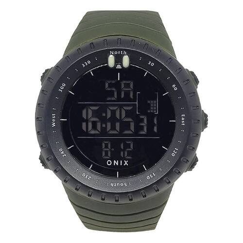 Relógio Masculino Onix Digital OX104 Verde e Preto Relógio Masculino Onix Digital OX104 Verde e Preto Marca: Onix Categoria: Digital ógico: Não Digital: Sim 1 Horário Calendário: Sim Despertador: Sim Mostra o Dia da Semana: Sim Mostra o Dia do Mês: Sim Cronômetro: Sim Contador Regressivo: Não Luz: Sim Cor da Iluminação: Azul Resistente à Água: 5 ATM Pode ser para nadar no raso, por pouco tempo submerso - Respingos: Sim - Chuva: Sim - Lavar Carro: Sim - Lavar Louça: Sim - Natação: Sim - Mergulho: Não Característica do Vidro: Acrílico Tipo de Fecho: Fivela Cor da Caixa: Verde e Preto Material da Caixa: Plástico Formato da Caixa: Redondo Diâmetro da Caixa: 50,00 mm Espessura da Caixa: 16,50 mm Cor da Pulseira: Verde Material da Pulseira: Borracha Largura da Pulseira: 24,00 mm Comprimento Máximo da Pulseira: 250,00 mm Alimentação: Bateria Interna Peso Líquido: 0,062 Kg Modelo: OX104 Cor Predominante: Verde Cor Diferencial: Preto : 12 Meses Conteúdo da Embalagem: 01 Relógio 01 Embalagem 01 Termo de Marca: Não Informado
