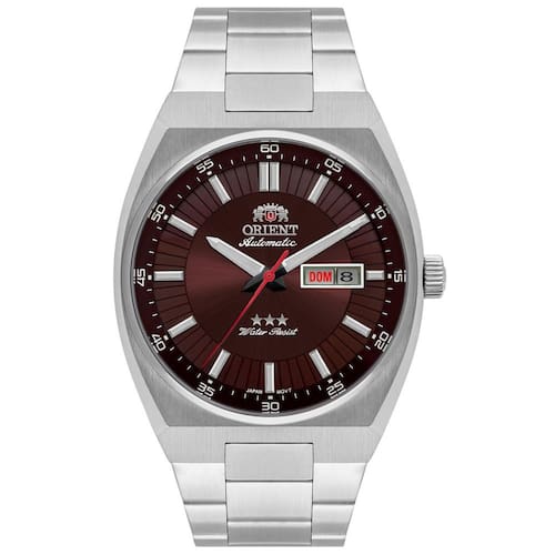 Relógio Masculino Orient Automático 469Ss087F N1Sx Prata O Relógio é um dos acessórios mais presentes em todas as fases da nossa vida, mesmo com inúmeros dispositivos modernos que mostram as horas, o clássico relógio para pulso não perdeu seu charme e é uma ótima opção para complementar o visual. O Relógio Masculino Orient Automático 469Ss087F N1Sx Prata é perfeito para uso pessoal ou para presentear alguém especial em uma data comemorativa, sendo um presente único, de ótimo gosto, elegância e muita praticidade. Produzido com materiais resistentes e de qualidade, a peça reúne sofisticação e estilo em um único item. A escolha perfeita para homens elegantes, que gostam de ter um acessório que complemente o look em qualquer ocasião. Descrição do Relógio Marca: Orient Modelo: 469SS087F N1SX Gênero: Masculino Mostrador: Marrom Bisel: Prata Caixa: Prata Mecanismo: Analógico Calendário: Sim Dia e Semana Coroa: Simples Resistencia a água: sim Vidro: Cristal Mineral Material da Caixa: Aço Inoxidável Material da Pulseira: Aço Inoxidável Diâmetro da Caixa: 47 mm Diâmetro do Visor: 38 mm Espessura da Caixa: 17 mm Largura da Pulseira: 26 mm Trava: Trava Comprimento da Pulseira: 20 cm Peso: 150 gramas Fabricante Orient Relógios da Amazônia LTDA de 1 Ano direto com Fabricante Conteúdo da embalagem: 01 Relógio de pulso 01 Estojo Autêntico Manual em português Cerificado de do Fabricante Eletrônica