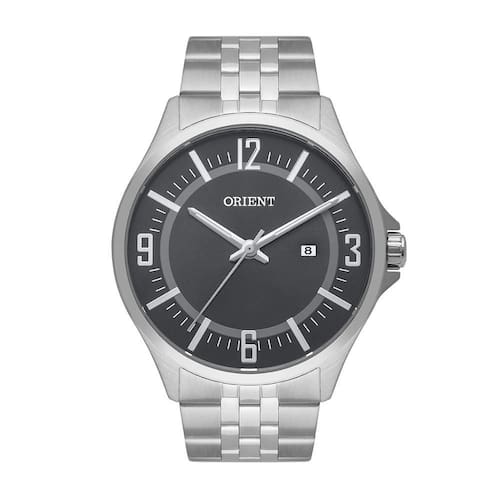 características: composição do vidro: cristal mineral material da caixa: aço inoxidável cor da caixa: prata material da pulseira: aço inoxidável cor da pulseira: prata mostrador: preto trabalhado com calendário e indicadores numerias + ponteiros na cor prata