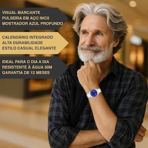 O relógio Orient MBSS1154A D2SX combina elegância e presença com um toque esportivo irresistível. Seu mostrador azul vibrante atrai olhares e transmite sofisticação na medida certa. A pulseira em aço inox oferece resistência e conforto para o uso diário, enquanto o design limpo e moderno se adapta perfeitamente a ocasiões casuais ou profissionais. Um modelo versátil, robusto e cheio de personalidade, ideal para quem busca praticidade sem abrir mão do estilo. Com resistência à água de 50 metros, é um aliado fiel para todas as horas.