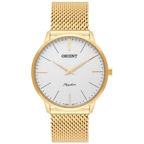 Relógio Masculino Orient Slim Mgsss005 S1Kx Safira DouradoO Relógio é um dos acessórios mais presentes em todas as fases da nossa vida, mesmo com inúmeros dispositivos modernos que mostram as horas, o clássico relógio para pulso não perdeu seu charme e é uma ótima opção para complementar o visual. O Relógio Masculino Orient Slim Mgsss005 S1Kx Safira Dourado é perfeito para uso pessoal ou para presentear alguém especial em uma data comemorativa, sendo um presente único, de ótimo gosto, elegância e muita praticidade.Produzido com materiais resistentes e de qualidade, a peça reúne sofisticação e estilo em um único item. A escolha perfeita para homens elegantes, que gostam de ter um acessório que complemente o look em qualquer ocasião. Características:Marca: ORIENT SlimModelo: Mgsss005 S1kxCategoria: MasculinoColeção / LinhaTamanho: GrandeFunções :AnalógicoCaracterísticasSistema de energia: BateriaCoroa: SimplesTampa posterior: PressãoResistência à água: 30MVidro: SafiraMostrador: Prata com detalhes douradoMaterial da caixa: Aço Inox douradoMaterial da pulseira: Aço Inox tipo esteira douradaMedidasDiâmetro da caixa: 4cmEspessura da caixa: 0,6cmAcompanhaNota FiscalManualEmbalagem OrientCertificado de garantia de 1 ano
