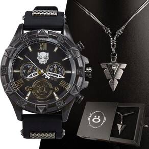 Relogio Masculino Pantera Aço Inox Preto + Cordão Corrente Presente Analogico Casual Social Possui leitura fácil e é perfeito para o dia a dia. Acompanhando o relógio, o colar preto traz um elemento marcante ao conjunto. Uma ótima opção para presentear em diversas ocasiões, expressando estilo com paixão pelo universo do Pantera Negra