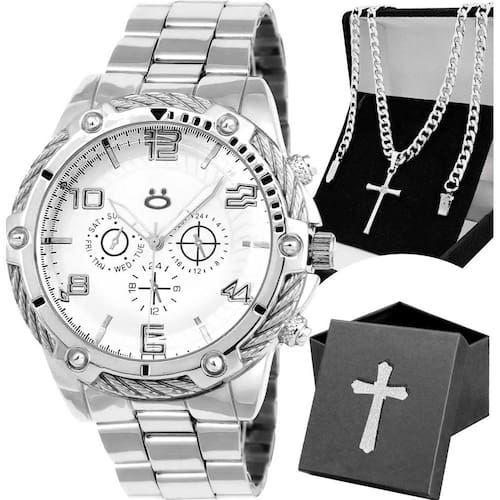 Relogio Masculino Prata + Cordao Grumet Crucifixo Presente Robusto Qualidade Premium Cruz chegou o Kit Premium Orizom Spaceman, o acessório perfeito para homens que buscam estilo, qualidade e significado em cada detalhe. Este kit exclusivo combina funcionalidade, durabilidade e simbolismo, tornando-o a escolha ideal para uso pessoal ou como um presente inesquecível.