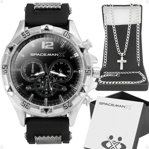 Relogio Masculino Prata + Cordão Grumet + Pulseira + Caixa Kit Especial Orizom Spaceman X: Surpreenda Quem Você Ama! Este conjunto exclusivo é perfeito para fazer uma pessoa especial em sua vida se sentir verdadeiramente mimada.