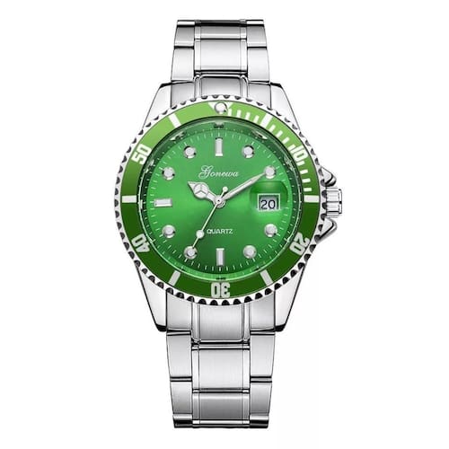 Relógio masculino prata luxo verde presente para namorado com caixa importado luxo