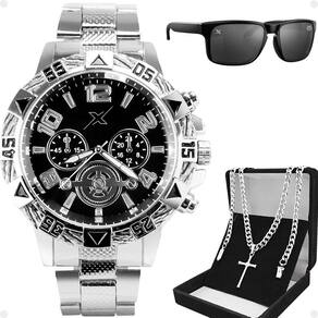 Kit Exclusivo Orizom Spaceman X: Relógio Analógico Masculino, Óculos de Sol, Corrente e Pingente Crucifixo