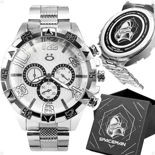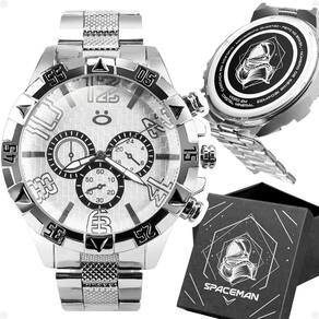 Relógio Masculino Orizom Spaceman - Tipo: Analógico (ponteiro) - Modelo: Spaceman - Qualidade: Premium - Cor: Prateado - Mostrador: Prateado - Material: Todo em aço inoxidável - Resistência à água: Prova d'água - Tampa: Blindada com arte exclusiva Orizom Spaceman e detalhes de autenticidade