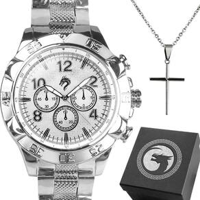 Com visual robusto e imponente, este relógio é fabricado em aço inoxidável na cor prata, com acabamento refinado e tampa traseira blindada com arte exclusiva de dragão gravada a laser. Resistente à água para situações cotidianas, conta com todos os elementos de autenticidade de um produto Orizom, garantindo originalidade e durabilidade.