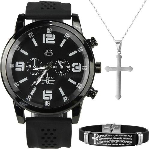 Relogio Masculino Preto Aço + Cordao Crucifixo Black Piano Kit de Acessórios Masculino Orizom - Linha Jesus na Cruz Este incrível kit masculino Orizom é a combinação perfeita de estilo, qualidade e espiritualidade, ideal para quem busca um visual sofisticado e cheio de significado. Composto por um relógio premium, cordão, pingente em forma de cruz e uma pulseira com oração, este conjunto é a escolha ideal para homens que apreciam acessórios exclusivos e repletos de simbolismo.