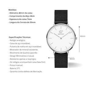 Especificações Técnicas: Relógio - Caixa de aço inoxidável; - Pulseira aço inoxidável milanese; - Mostrador de mineral resistente; - Movimento de Quartzo; - Design Minimalista; - Resistente apenas a respingos; - Todos os relógios acompanham caixa da marca; - Possui manual; - Bateria 377; - Relógio analógico; - Garantia contra defeito de fábrica.