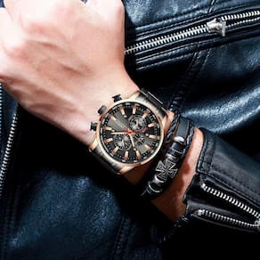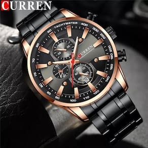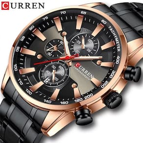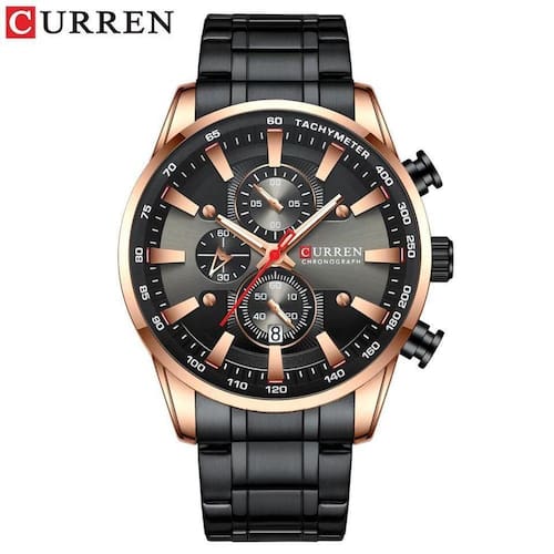 - Tipo De Item: Relógio De Pulso - Marca: Curren - Estilo Do Relógio: Fashion, Moderno, Casual - Gênero: Masculino - Dial Display: Analógico - Movimento: Quartz - Modelo: 8351 e 8363 - Resistência a Água: 3 ATM pelo fabricante não nadar, mergulhar e banho quente . - Característica: Resistente a Água e Choques - Funções: Data e Cronógrafo Funcional - Formato Do Mostrador: Redondo - Diâmetro Do Mostrador: 4,8 cm - Material Do Mostrador: Vidro Hardlex - Espessura Da Caixa: 1,4 cm - Material Da Caixa: Liga Metálica De Alta Qualidade - Cores: Azul/ Rosê, Prata/Azul, Preto/Azul, Branco/Prata, Preto/Rosê. - Tipo De Fecho: Fecho Dobrável Com Trava - Material Da Pulseira: Aço Inoxidável - Cor Da Pulseira: Preto/Dourado - Largura da Pulseira: 2,4 cm - Comprimento Total: 24 cm - Acompanha Caixa Box Ean: 0736568118900
