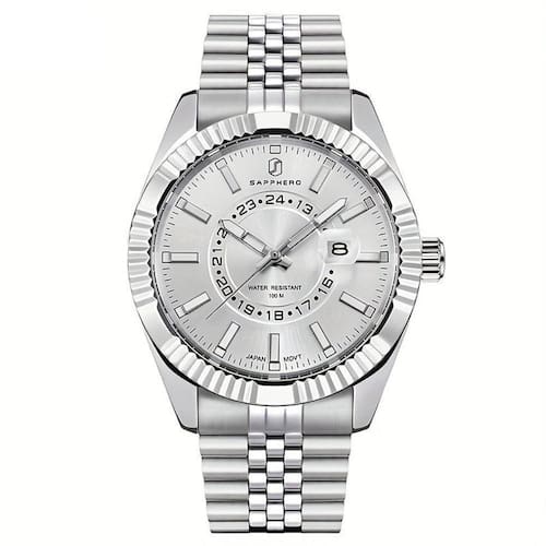 [Detalhes: Brilho] Com um acabamento prateado cintilante, este relógio captura a luz de maneira deslumbrante, adicionando um toque de brilho ao seu pulso. É uma declaração silenciosa de luxo que transforma cada instante em um momento especial.