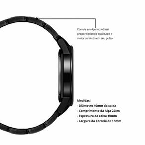 Este relógio apresenta uma pulseira de metal luxuosa, composta por elos de três peças. Cada elo é cuidadosamente trabalhado em uma forma elegantemente afunilada, assegurando uma transição suave da caixa para o fecho, proporcionando um toque de sofisticação sem igual.