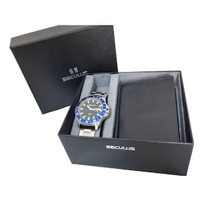 Quer se sentir bem com você mesmo levando mais elegância ao seu estilo Esse modelo de relógio de pulso é exatamente o que está procurando Irá chamar a atenção por onde andar e incrementar uma sofisticação com esse acessório sensacional e o melhor de tudo: à prova d'água Relógios não tem apenas como função informar hora e data, possuem uma finalidade muito importante de vestir você com classe, elevando sua autoestima. Elegância e estilo é o que queremos para você na sua hora. Está pronto para ser a melhor versão de você mesmo Relógio Masculino Seculus 20801G0SVNA3 Produto comprado diretamente com os representantes oficiais da marca no Brasil. Especificações do Produto: - Material da pulseira: Aço inoxidável; - Material da caixa: Aço inoxidável; - Vidro: Cristal mineral; - Máquina: ógica à Bateria com funcionamento Quartzo; - À prova d'água: Resiste até 5 ATM ; - Fundo: Rosca; - Peso: 125 gramas. Dimensões do modelo seguindo o esquema que está nas fotos do anúncio: - Espessura Caixa: 11 mm 1,1 cm ; - Diâmetro Caixa: 45 mm 4,5 cm ; - Diâmetro Visor: 35 mm 3,5 cm ; - Comprimento Vertical: 53 mm 5,3 cm ; - Comprimento Horizontal c/ coroa : 49 mm 4,9 cm ; - Largura Pulseira: 20 mm 2,0 cm ; - Largura Pulseira Base: 22 mm 2,2 cm . O Relógio Seculus acompanha: - Estojo ; - de 2 anos em todo o Brasil com o fabricante; - Manual em português; - Carteira; - . Marca: Não Informado