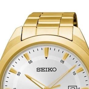 Relógio Pulso Seiko Masculino ógico em Aço com Visor Branco - Vidro: Cristal Mineral, Pressão: 100M - Apesar de não ser indicado para mergulhos em grandes profundidades, possibilita que você entre no mar e na piscina por um período mais prolongado, Função: ógico / Calendário, Diâmetro da Caixa: 4,2cm - SUR212B1-S1KX Mecanismo: ógico Aviso Imagens meramente ilustrativas Calendário: ógico com dias da semana Comprimento da pulseira: 24 cm Conteúdo da Embalagem: 01 relógio, 01 certificado de Cor: Dourado EAN: 7891529108673 : 01 ano Gênero: Masculino Marca: Seiko Origem: Nacional Pulseira Aço Inoxidável Referência do modelo SUR212B1 S1KX Resistência a água WR 5 ATM Acompanha: + Certificado + Embalagem . Marca: Não Informado