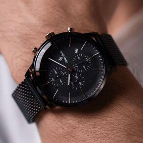 O Relógio Masculino Sherlock Black é a quintessência da sofisticação, mesclando com maestria o moderno e o clássico em um acessório de pura elegância. Inspirado na perspicácia de Sherlock Holmes, este relógio destaca-se por seu vidro com efeito de lupa, um tributo ao lendario detetive. Essa Jóia é movida por um mecanismo Seiko de cronógrafo com calendário, assegurando precisão e fiabilidade. A pulseira em aço recebe um requintado banho black, complementada por um mostrador também black e adornado com detalhes em rose gold, conferindo harmonia e enriquecendo seu design magnífico.